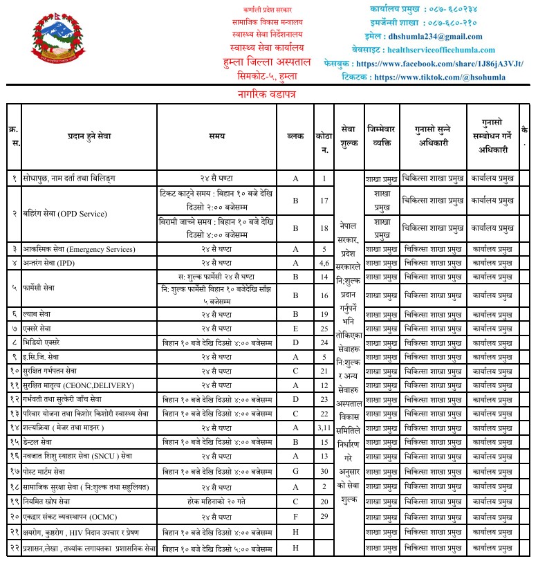 स्वास्थ्य सेवा कार्यालय, हुम्ला